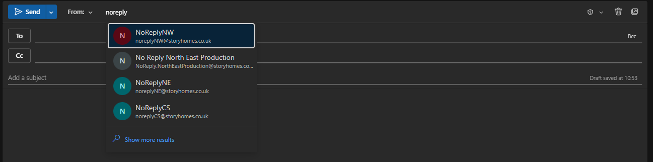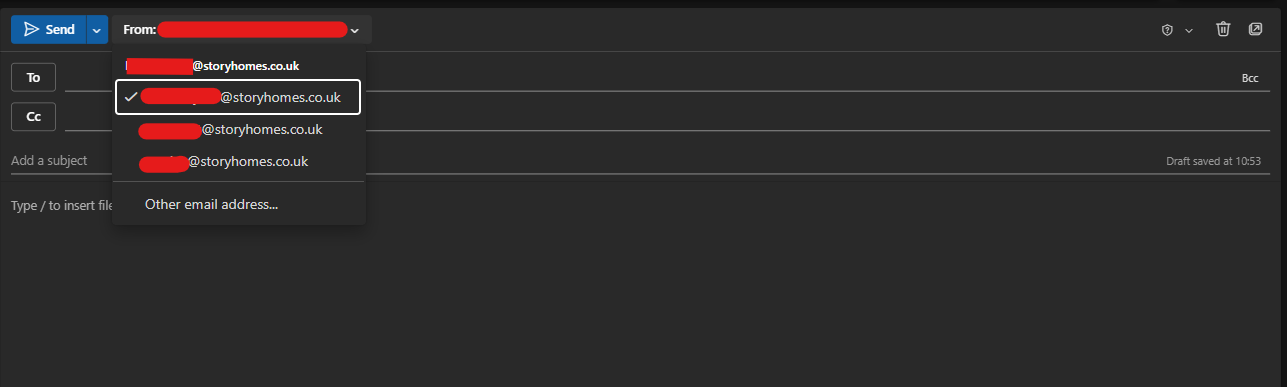 After that, the mailbox should then appear automatically as a previously used address for the next time you need to Send As a particular address