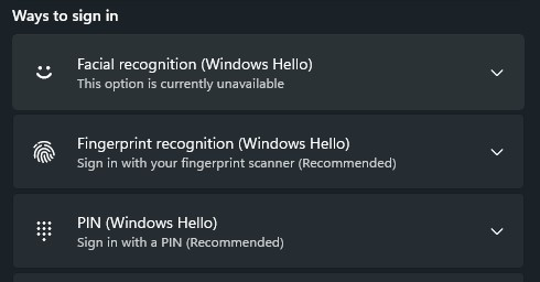 Depending on your model of laptop, you may only be able to set a PIN. If you have a fingerprint reader physically on the laptop but the option is still unavailable to you, the reader may be blank and thus not usable